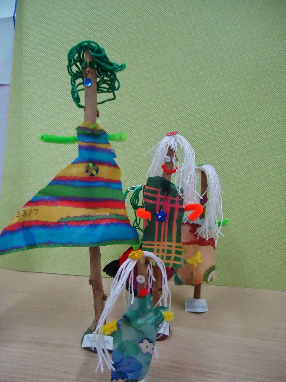 με ένα απλό κλαρί, λίγο ύφασμα, μαλλί και πούλιες! Και να! μερικοί ήρωες που να έρχονται ποιος ξέρει από πού; Τι ιστορίες θα μας πουν;